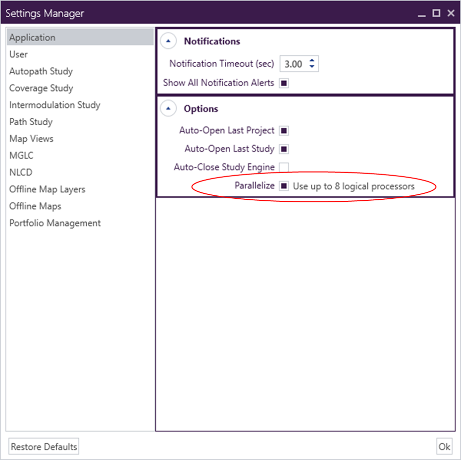 Users with SSD data storage can click on the Settings Manager gear icon in the main ribbon bar. Navigate to the Application settings and check the box to ‘Parallelize’. If the study server is already running, it must be closed for this change to take effect. SoftWright benchmark experiments have shown coverage study run times can be reduced by a factor of two to four times by enabling parallel processing; the degree of improvement will depend on the user hardware.