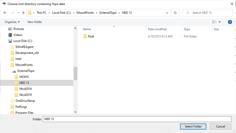 The Topographic Portfolio index that TAP uses includes the drive and folder information used to find the topographic elevation data files. If the data files on a drive are indexed on an external drive, and the drive is removed and later connected, it is possible that the re-connected drive will be assigned a different drive letter by Windows. If this happens, the location information in the TAP topo portfolio index will no longer be valid, and TAP will not be able to find the data when needed. Assigning a mount point for the drive, and using the mount point instead of the drive letter when indexing the data will eliminate this problem.